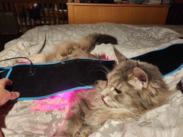 We also use it on (humans) pulled or overworked muscles & areas of inflammation. It provides gentle heat & is able to be used in the car or while walking around the house (using their power pack that comes free with the belt)